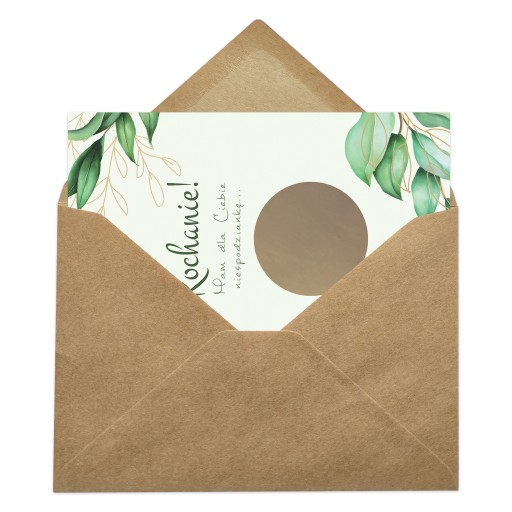 - Kartka zapakowana w kopertę ekologiczną tworzącą spójną całość z kartką