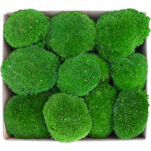 Mech kulisty dark green o naturalnym, ciemnozielonym wybarwieniu. Produkt pakowany w karton o wydajności 0,0625m2, estetycznie ułożony, oczyszczony z większości zanieczyszczeń. Mech poduszkowy po wyjęciu z kartonu jest gotowy do pracy. Wydajność jednego kartonu mchu kulistego to do 25x25cm powierzchni dekoracji.