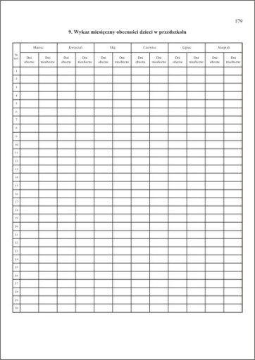 Dziennik zajęć dla przedszkola MEN-I/1 (godzinowo dzienny)
