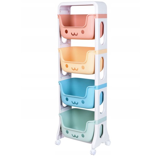 Kolorowa praktyczna szafka Bobby pozwoli utrzymać porządek w pokoju Twojego dziecka. Regał posiada aż 4 pojemniki, dzięki czemu zmieści mnóstwo zabawek. Przesuwanie szafki ułatwiają kółka z hamulcami. Przyjemne pastelowe barwy świetnie pasują do pokoi dziecięcych. Regał wykonano z elastycznego i trwałego tworzywa sztucznego. Łatwy do utrzymania w czystości, wystarczy czyścić wilgotną ściereczką.