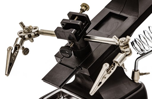 Uchwyt posiada ogromne możliwości regulacji: ramiona, szczypce są regulowane, lupę można przesuwać góra / dół oraz obracać soczewkę aby uzyskać idealne ułożenie.