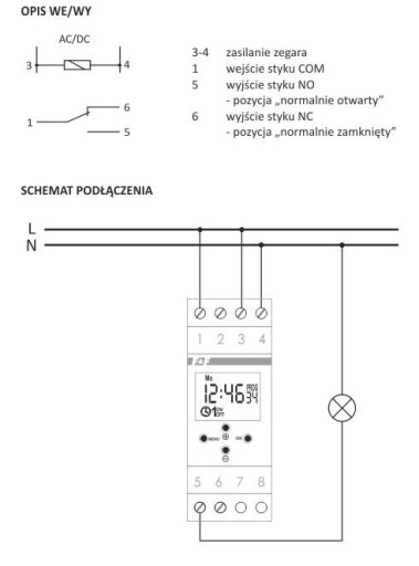 UWAGA! W trybie półautomatycznym pozycja styku jest przeciwna do tej, który wynika z cyklu programu (czyli w nocy styk jest wyłączony, a w dzień załączony). Praca półautomatyczna działa tylko do końca obecnego cyklu pracy automatycznej, np. wejście w tryb półautomatyczny w dzień spowoduje załączenie światła, aż do momentu, gdy nastąpi pora programowego załączenia wynikająca z cyklu astronomicznego. Wtedy zegar wraca do pracy automatycznej (a światło pozostaje dalej włączone, aż do świtu).