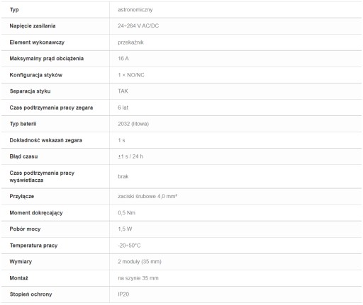 - Time - wyznaczenie „sztywnej” godziny załączenia lub wyłączenia niezależnej od cyklu wschodów i zachodów