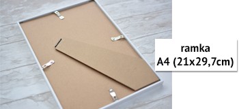 Masz do wyboru zakup ramki w jednym z 4 kolorów. Kupując plakat z ramką otrzymasz plakat włożony już do ramki, gotowy do postawienia lub powieszenia na ścianie.