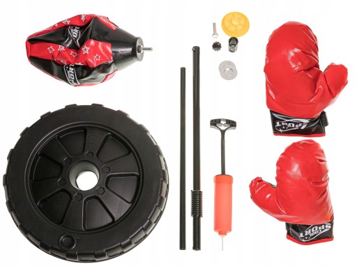 - Zestaw zawiera pompowaną gruszkę bokserską na sprężynie, parę rękawic bokserskich i stabilną podstawę do napełnienia wodą lub piaskiem.