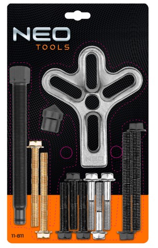 Ściągacz do piast NEO (nr ref. 11-811) zestaw składa się z 13 elementów wykonanych z wysokiej jakości stali gwarantującej wieloletnią trwałość i niezawodność. W komplecie znajdują się śruby wspomagające o długości: 95, 75 i 45 mm. Główna śruba rozpierająca o długości 130 mm. Marka NEO spełnia oczekiwania profesjonalistów.