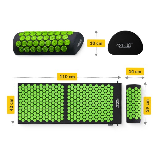 Duża mata do akupresury z poduszką XL 4FIZJO klasyczna czarno-zielona