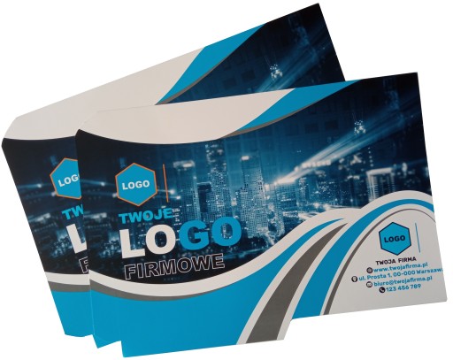 - teczki jedno lub dwubigowe (opcjonalnie do wyboru) wg makiety z opisu aukcji