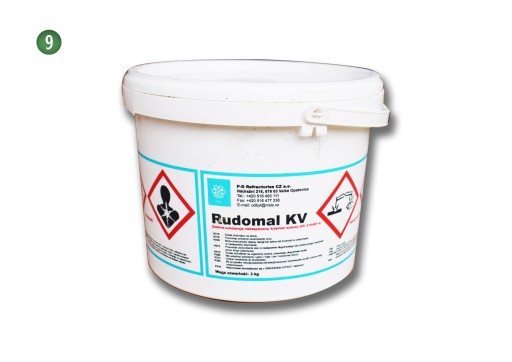 (9) Klej RUDOMAL KV stosowany przez producenta wyżej wymienionej ceramiki gwarantuje mocne żaro i kwasoodporne połączenie. Opakowanie 3 kg wystarcza na 8 m komina, dla wyższych zestawów stosujemy odpowiednio 4 i 5 kg.