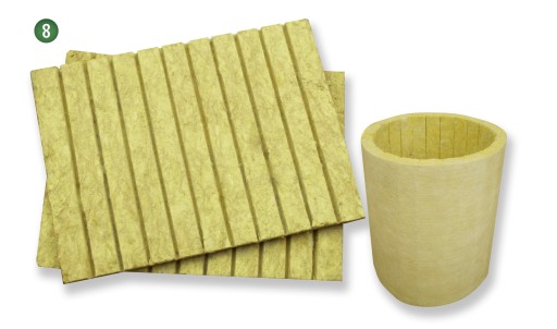 (8) Wełna izolacyjna odpowiada normie EN 14303:2009+A1:2013, jest hydrofobizowana ( nienasiąkliwa dzięki impregnacji olejem mineralnym), ognioodporna. Głównym jej zadaniem jest izolacja oraz stabilizacja wkładu ceramicznego w pustaku.Zaleca się jej stosowanie w urządzeniach grzewczych o wysokiej sprawności gdzie temperatura spalin jest niższa niż 200 stopni
