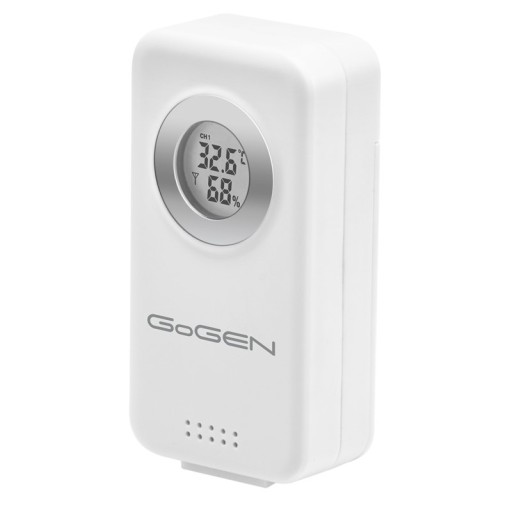 Czujnik zewnętrzny stacji meteo GoGEN ME3257 pozwala na pomiar temperatury oraz kontrolę wilgotności powietrza wewnątrz i na zewnątrz.