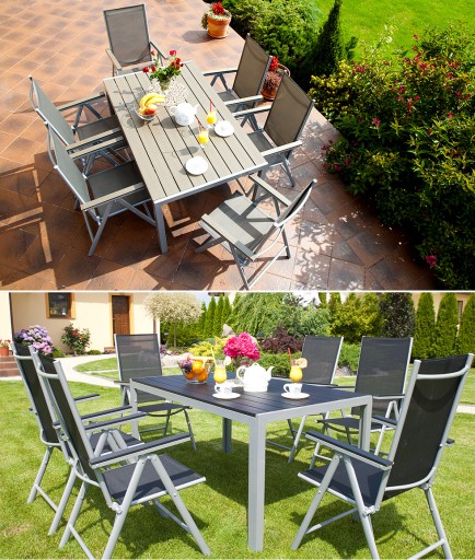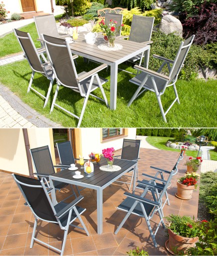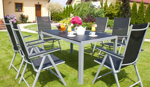 Meble ogrodowe MODENA są bardzo proste i przyjemne w użytkowaniu. Konstrukcja stołu i krzeseł wykonana jest z wysokiej jakości aluminium która jest malowana farbą proszkową. Blat stołu zestawu MODENA to wodoodporna deska kompozytowa WPC. Składane krzesła z siedmiopozycyjną regulacją oparcia, sprawiają odczucie wygody i luksusu.