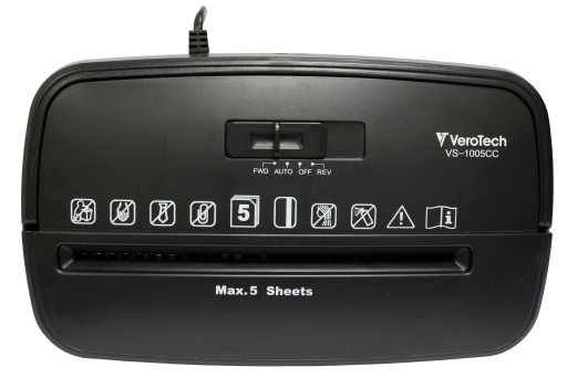 Niszczarka Verotech VS-1005CC służy do niszczenia dokumentów i doskonale nadaje się do biura oraz użytku domowego. Jest w stanie jednorazowo zniszczyć do 5 arkuszy papieru w formacie A4. Posiada automatyczną funkcję start / stop oraz funkcję cofania zacięć.