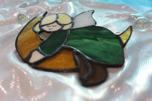 Aniołek witrażowy wykonany jest w 100% ręcznie i w 100% w Polsce przez polskich rzemieślników.