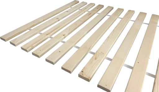 Stelaż w całości wykonany jest z mało sęcznego drewna litego. Listwy są gładkie, na krawędziach zaokrąglone dzięki czemu nie musimy się obawiać, że stelaż spowoduje uszkodzenie materaca. Ponadto przerwy między listwami wynoszą 4-5 cm co dodatkowa sprzyja we właściwym użytkowaniu materaca, który nie będzie się wgniatał w przerwy między listwami w przeciwieństwie do stelaży z większymi przerwami.