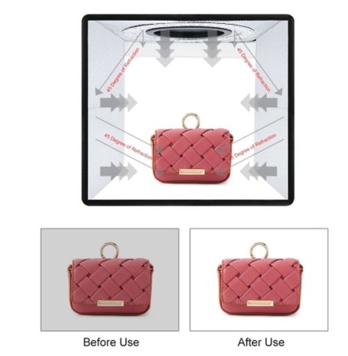 Zestaw jest w pełni wystarczalny do wykonywania zdjęć bezcieniowych małych produktów takich jak biżuteria, zabawki, zegarki, potrawy kulinarne na potrzeby katalogów, aukcji internetowych, książek, czasopism itd.