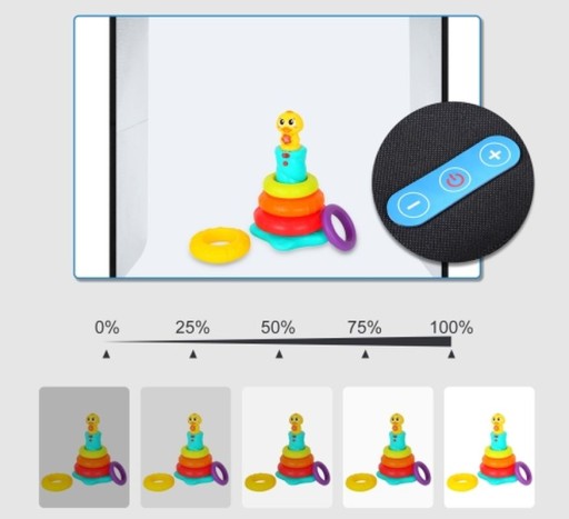 - Namiotu bezcieniowego 25cm z wbudowaną lampą LED i pilotem sterującym