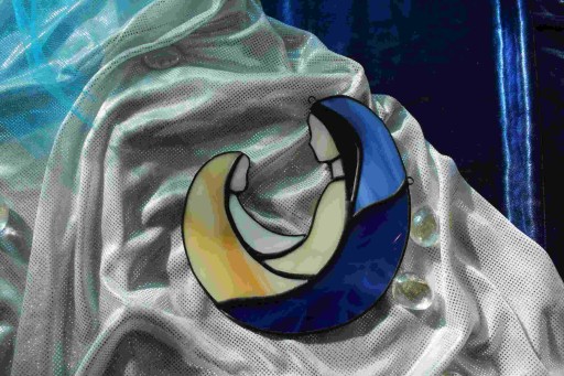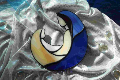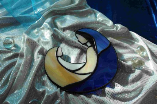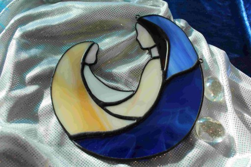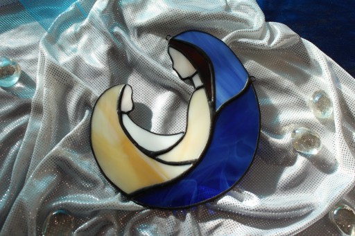Nietuzinkowa kompozycja powoduje, że witraż idealnie nadaje się jako prezent dla młodej mamy, jako pamiątka narodzin, chrztu czy innej uroczystości.