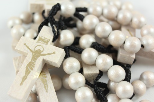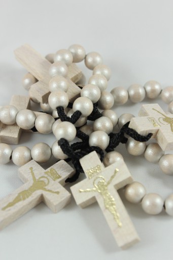 Różaniec - Dziesiątka w kolorze białym-perłowym z prześwitami złota