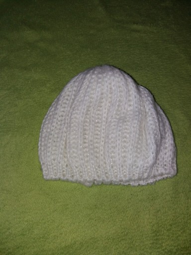 Oferuję do sprzedania białą czapeczkę dla dziewczynki. Czapeczka nie posiada metki z rozmiarem. Rozmiar czapeczki i wiek dziecka podaję orientacyjnie. Podaję wymiary umożliwiające dopasowanie czapeczki do obwodu głowy dziecka. Czapeczka ma ładny wzór. Jest w dziurki, udekorowana srebrną nitką. Podaję wymiary: obwód 48 cm, długość 19,5 cm. Czapeczka posiada delikatny ściągacz. Polecam i zachęcam do zakupu. Zachęcam również do obejrzenia pozostałych moich aukcji.