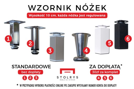 Poniżej zamieszczamy wzorniki dostępnych uchwytów i nóżek.