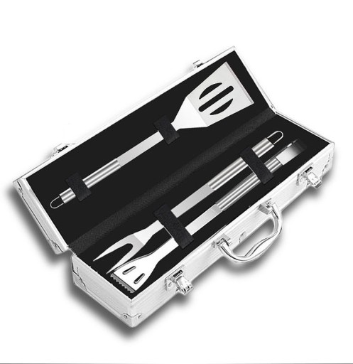 Zestaw akcesoriów do grillowania, wykonany z wytrzymałej stali nierdzewnej, nie rdzewieje i długotrwały. Wyposażony w antypoślizgowe uchwyty ze stali nierdzewnej, aby zapewnić najbardziej komfortowe grillowanie.