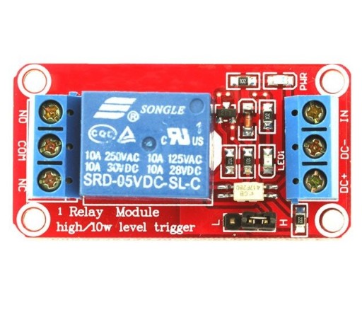Moduł przekaźnika 1-kanałowego z optoizolacją 5V 10A L/H. Cewka zasilana napięciem 5V, maksymalne obciążenie 10A. Moduł może być sterowany bezpośrednio przez mikrokontroler Arduino, 8051, AVR, PIC, DSP, ARM, ARM, MSP430, TTL). Optoizolacja odpowiedzialna jest za separację sygnału sterującego od części zasilania przekaźnika. Gwarantuje to bezpieczeństwo funkcjonowania układu sterującego. Przekaźniki SRD wyposażone są w cewkę zasilaną napięciem 5V. Wykorzystywane w modułach uruchomieniowych, płytkach stykowych, w projektach z wykorzystaniem ww. mikrokontrolerów.
