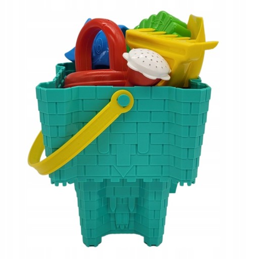 ZESTAW ZABAWEK DO PIASKOWNICY, NA PLAŻĘ - WIADERKO Z GRABKAMI, ŁOPATKĄ I FOREMKAMI, KONEWKĄ.