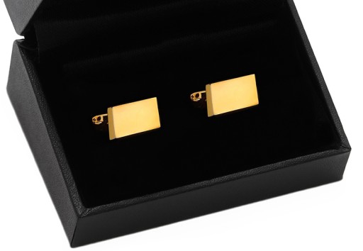 Wysokiej jakości spinki do mankietów zapakowane w pudełko prezentowe.