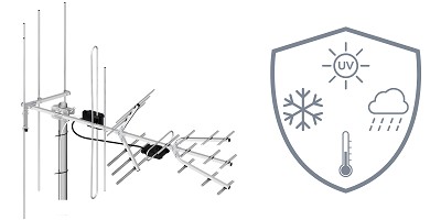 Główne elementy anteny wykonane są z aluminium. Stalowe elementy konstrukcyjne są ocynkowane galwanicznie. Gwarantuje to wysoką odporność anteny na warunki atmosferyczne i uszkodzenia. Masz pewność, że antena posłuży Ci przez wiele lat!