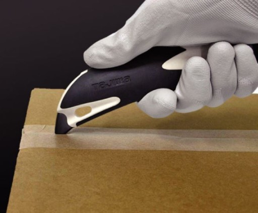 Nóż z łamanym ostrzem 18 mm czarno-biały z płetwą Tajima do cięcia folii, papieru i innych cienkich materiałów