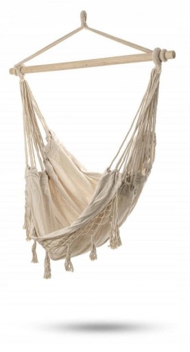 - Gruba drewniana belka o szerokości 91cm i grube oploty z wiązanych na niej lin zapewnia dużą wytrzymałość wiszącego fotela.