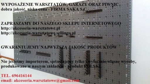 DOSTĘPNE RÓWNIEŻ INNE AKCESORIA WYPOSAŻENIA WARSZTATÓW, GARAŻY, PIWNIC (UCHWYTY NA KLUCZE OCZKOWE, PŁASKIE, MŁOTKI, PUSZKI / SPRAYE, WKRĘTAKI, PILNIKI, ZAWIESZKI DRUCIANE ORAZ WIELE INNYCH).