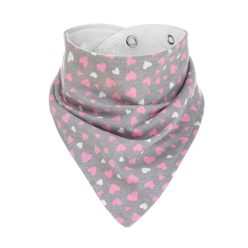 Apaszka dziecięca, dwuwarstwowa, która poprzez swój kształt i sposób wykonania spełnia 2 funkcje: można ją traktować zarówno jako śliniaczek – osłania bowiem ubranie dziecka podczas karmienia; a także jako apaszka dla dziecka, osłaniająca szyję i stanowiąca element ubioru. Posiada regulowane zapięcie na napy, co daje możliwość skrócenia lub wydłużenia długości, dzięki czemu może być używana zarówno przez niemowlaka, jak i przedszkolaka. Produkt jest wykonany z dwóch warstw materiału – 100% bawełna, wierzchnia miękka warstwa ozdobiona jest kolorowymi dziecięcymi nadrukami.