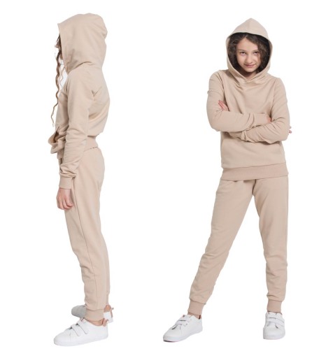 СПОРТИВНЫЙ КОСТЮМ DC БЕЖЕВЫЙ КЕНГУРУ + БРЮКИ НА ЭЛАСТИКЕ 152