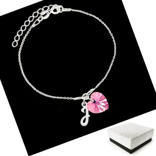 Przedmiotem oferty jest srebrna bransoletka dla dziewczynki z literką oraz kryształowym serduszkiem w komplecie z pudełkiem jubilerskim.