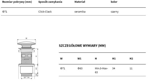 EXCELLENT KOREK UMYWALKOWO - BIDETOWY CLIK-CLAK CZARNY CERAMICZNY - UNIWERSALNY