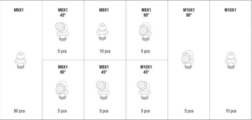 Комплект пресс-масленок YATO KALAMITEK 110 шт. YT-06888