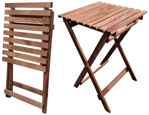 STOLIK DREWNIANY SKŁADANY PIKNIKOWY, BALKONOWY W KOLORZE BRĄZOWYM