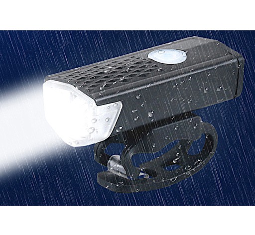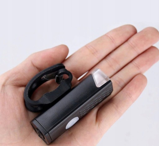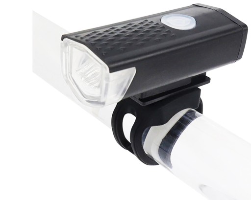 Przednia lampka rowerowa USB z wbudowanym akumulatorem do zamontowania na kierownicy.