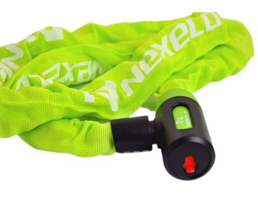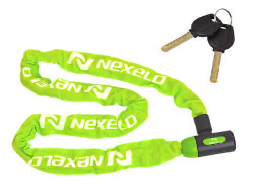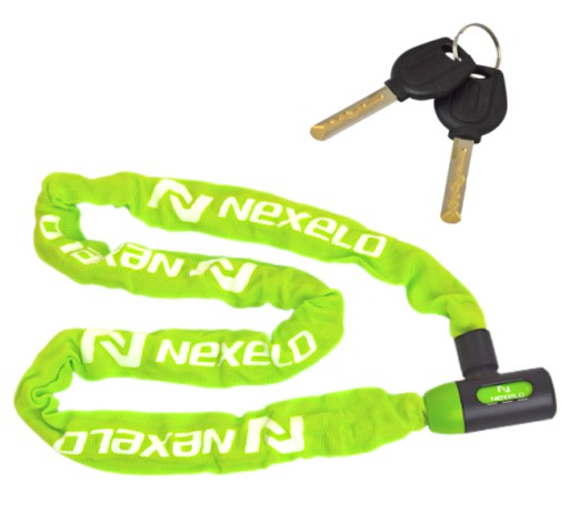 Zapięcie rowerowe marki NEXELO wykonane z mocnego łańcucha o grubości 6 mm oraz długości 1200 mm. Dodatkowo wyposażone w osłonę, która chroni rower przed zarysowaniami.