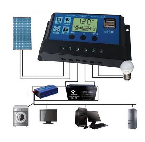 - Kontrolera solarnego z wyświetlaczem LCD 10A USBx2