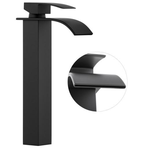 Mechaniczna wysoka bateria umywalkowa, stojąca, jednouchwytowa ze stałą wylewką z efektem wodospadu i ceramiczną wymienną głowicą 25 mm. Korpus baterii wykonano z mosiądzu. Zestaw zawiera 2 wysokiej jakości wężyki w oplocie ze stali nierdzewnej o długości 50 cm ze standardowym przyłączem 3/8 cala oraz komplet akcesoriów do montażu baterii. Design baterii został podporządkowany trendom na rok 2020 - prezentuje się niezwykle elegancko i idealnie pasuje do nowocześnie urządzonej łazienki.