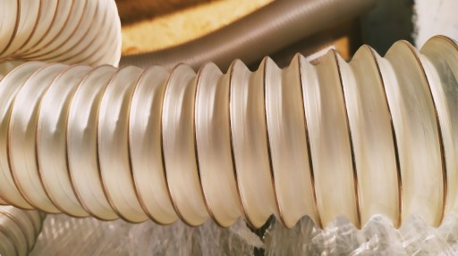 Wąż do maszyn CNC przeźroczysty, giętki, elastyczny, trudnościeralny i ściśliwy osiowo. Zalecany do wentylacji stolarni i odciągów stolarskich, przesyłania i odciągu pyłów, trocin, wiórów i innych drobnocząsteczkowych materiałów w ruchomych instalacjach odciągowych i odpylających. Stosowany w przemyśle drzewnym, meblarskim i maszynowym, do odciągów pyłów, mgieł olejowych i oparów związków chemicznych. Odprowadzenie ładunków statycznych odbywa się poprzez uziemienie spirali.