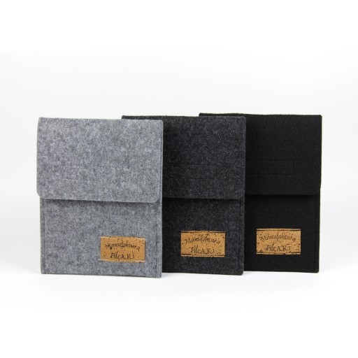 Proste, lekkie, praktyczne i minimalistyczne etui wykonane z filcu poliestrowego. Metka z tkaniny korkowej.