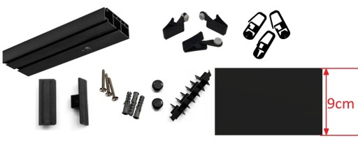 - Maskownica w kolorze czarnym o szerokości 9 cm i długości równej całkowitej długości karnisza