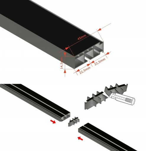 - Konstrukcja szyny jest prosta, klasyczna, sprawdzona przez tysiące klientów, co gwarantuje lekkość oraz łatwy i stabilny montaż