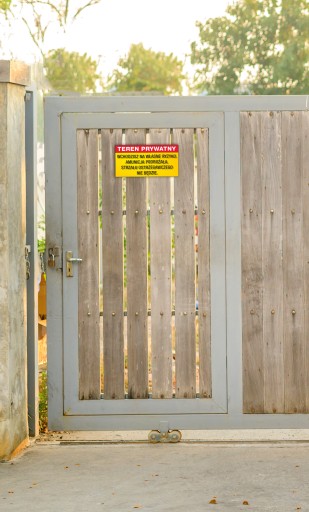 PONIŻEJ MOŻNA ZOBACZYĆ JAK NASZE TABLICZKI OSTRZEGAWCZE CZY INFORMACYJNE WYGLĄDAJĄ NA PRZYKŁADOWYCH PŁOTACH