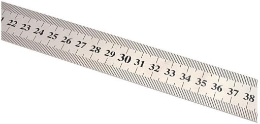 Wysokiej jakości przymiar liniowy tzw.linijka stalowa. Miara jest wygrawerowana na czarno z obu stron. Z jednej strony miara cm/mm z drugiej w calach.