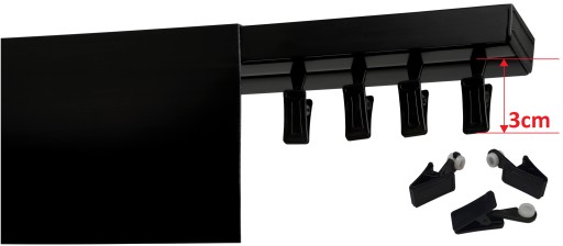 - Maskownica w kolorze czarnym o szerokości 9 cm i długości równej całkowitej długości karnisza